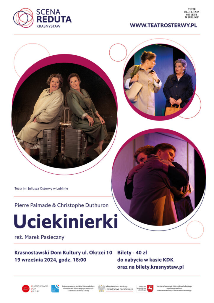 Krasnostawski Dom Kultury i Teatr im. J. Osterwy w Lublinie zapraszają na nowy sezon programu Scena Reduta. 19 września 2024 r. o godz. 18:00 zostanie wystawiony spektakl „Uciekinierki”.