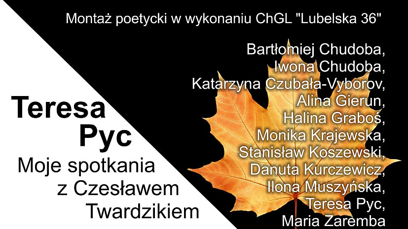 W pierwszej części wydarzenia zaplanowano montaż poetycki, prezentowany przez członków ChGL „Lubelska 36” (Bartłomiej Chudoba, Iwona Chudoba, Katarzyna Czubała-Vyborov, Alina Gierun, Halina Graboś, Monika Krajewska, Stanisław Koszewski, Danuta Kurczewicz, Ilona Muszyńska, Teresa Pyc, Maria Zaremba). Drugim elementem przedsięwzięcia będzie wspomnienie poetki i recytatorki Teresy Pyc „Moje spotkania z Czesławem Twardzikiem”, połączone z prezentacją poematu „Majdanek przysięga”. W wieczorze będzie uczestniczyć najbliższa rodzina Czesława Twardzika, wybitnego chełmskiego poety, zmarłego w 1979 r.