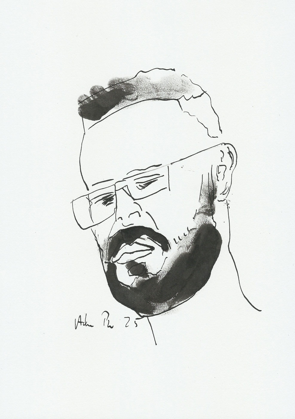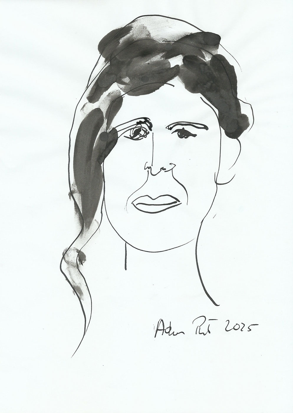 Wystawa „Kolor-Biały-Czarny” liczy 30 prac wykonanych na papierze A4. Wszystkie powstały w 2025 r. Są to portrety, czyli ten rodzaj sztuki, którą zajmuję się od 40 lat.